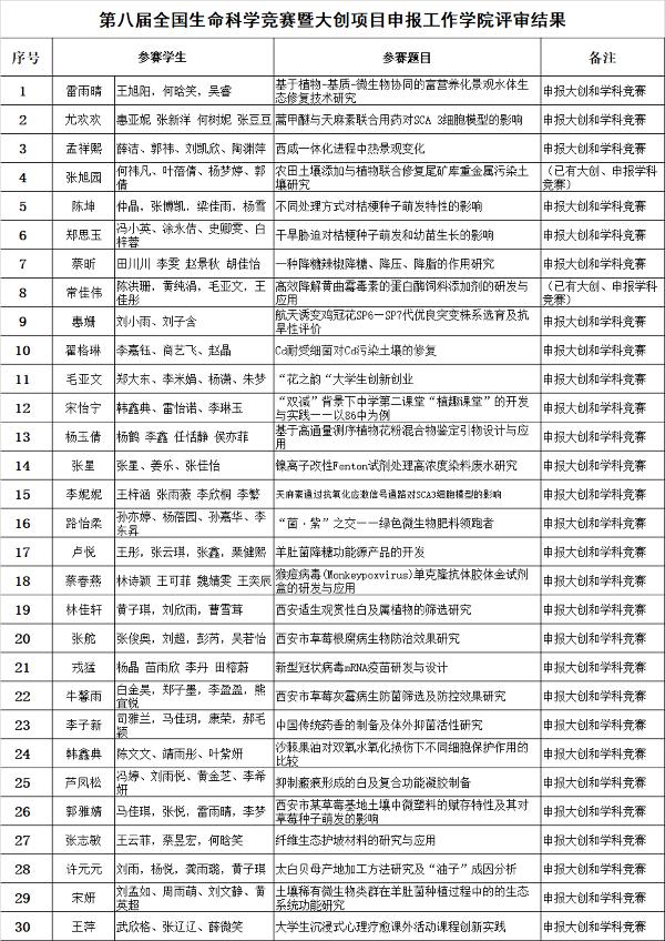 附:2023年大学生创新创业训练计划项目暨全国大学生生命科学竞赛评审结果