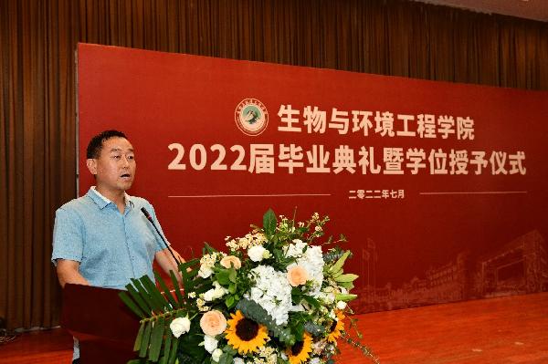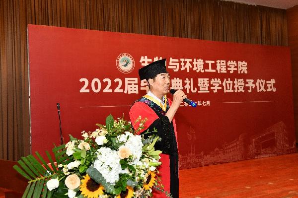 随后,院长高天鹏在讲话中首先对学业有成、即将告别母校、踏上新的人生征途的毕业生表示了祝贺和祝福!离别之际,他向毕业生们提出了四点希望:一是志存高远,以为国为民的情怀引领未来;二是踏实勤奋,以永久奋斗的意志引领未来;三是涵养品德,以坚守底线的品格引领未来;四是勇于创新,以追求卓越的精神引领未来。希望同学们能牢记嘱托、秉承校训,在新的学习或工作岗位上,开创进取,守正创新,捷报频传,用青春和智慧续写新篇章。