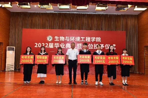 副院长王子见首先代表学院通报了2022届毕业生的总体情况。校党委委员鲍锋教授及学校相关部门负责人分别为考研学生和优秀毕业生颁奖、并为2022届校友理事颁发聘书。