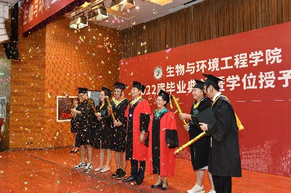 最后院长高天鹏教授、教授代表赵银萍分别为取得学士学位的毕业生拨转流苏,授予学位。