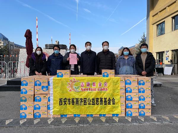当前西安市疫情防控已进入收尾阶段,bat365自2021年12月22日封闭管理以来,已近一个月,在此期间,学院全体师生齐心抗疫,收到了来自社会各界的爱心捐赠。1月15日,西安市春雨济困公益慈善基金会向bat365平台官网在校师生捐赠椰子汁200箱。这是学院环境生态工程专业2002班王蕾同学在联系了西安市小蜜蜂公益慈善基金会捐赠抗疫物资后,为学院联系的第二家公益慈善组织;也是学院在收到陕西仪诚实验室设备有限公司、英菲莱特生物科技有限公司和西安市小蜜蜂公益慈善基金会三家单位捐赠物资后收到的第四批抗疫捐赠物资。